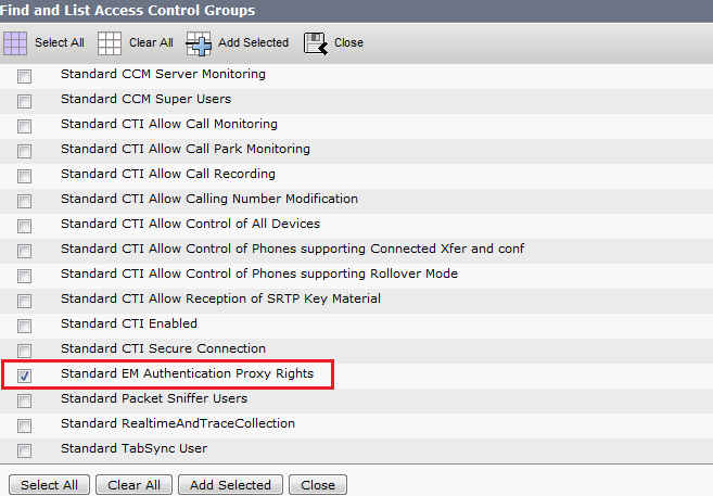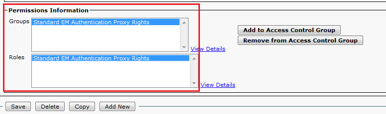 - Add the AppUser to the “Standard EM Authentication Proxy Rights” Access Control Group.