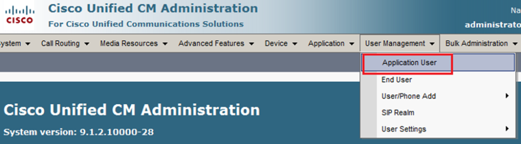 The First step is to configure one generic Application User in CUCM with permissions to 3rd party applications (ALM) to login Extension Mobility: